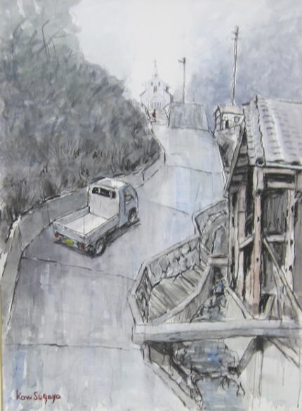坂道と崩れた家(五島列島)(2023年 新槐樹社展)